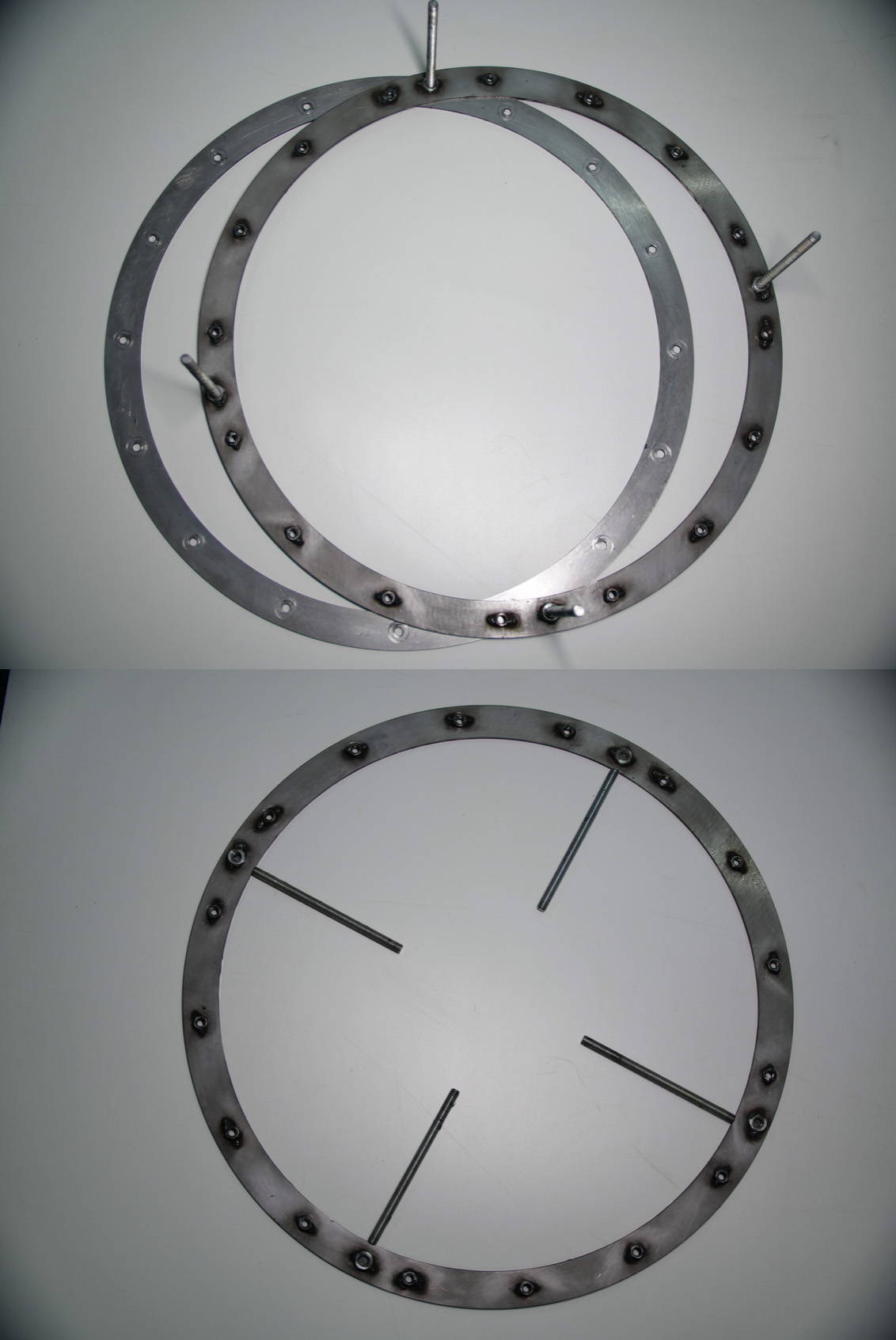 A pair of 4mm thick glueing rings with 16 M8 nuts & 4 x M10