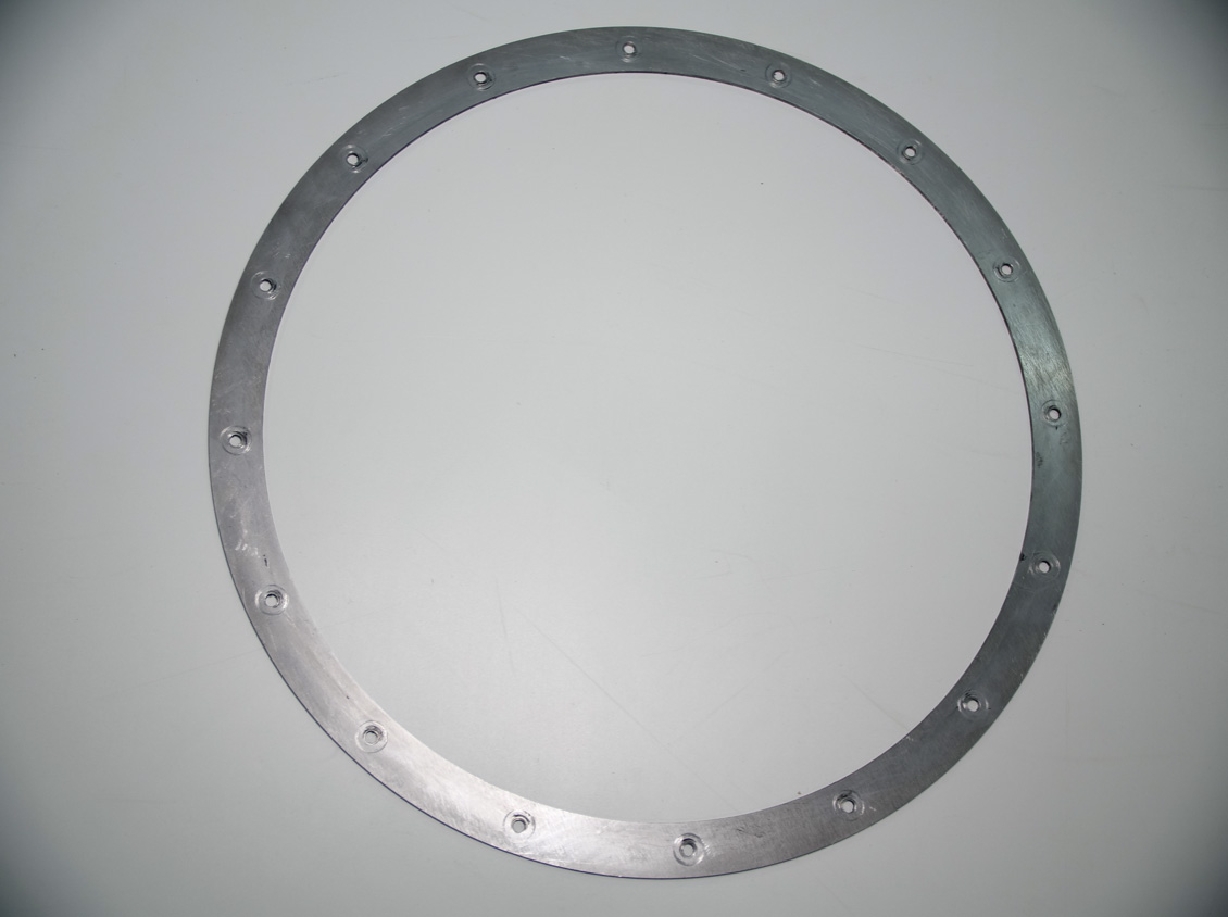 A pair of 4mm thick glueing rings with 16 M8 clearance holes €125